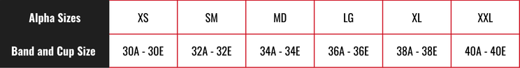 Not all sports bras use a band size and cup size. Here is a general guide to converting your band size and cup size to alpha sizes. Please note that not all brands will fit the same.